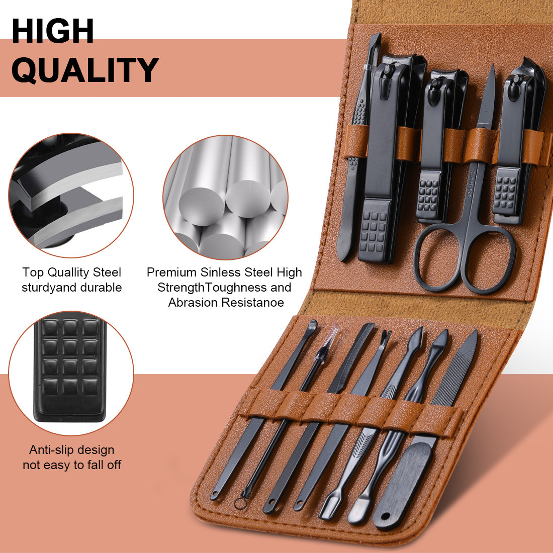 Manicure Set Personal Care Nail Clipper Kit Manicure 12 In 1 Professional Pedicure Set Mens Accessories Grooming Kit Fathers Gift for Men Husband Boyfriend Parent